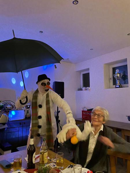 Franz am Keyboard und Nicole mit ihrer sagenhaften Stimme, haben uns musikalisch unterhalten. Als Nicole das Lied "Winter Wonderland" sang, schneite ein Schneemann in den Saal. Mit seiner super Einlage brachte er den ganzen Saal zum lachen.