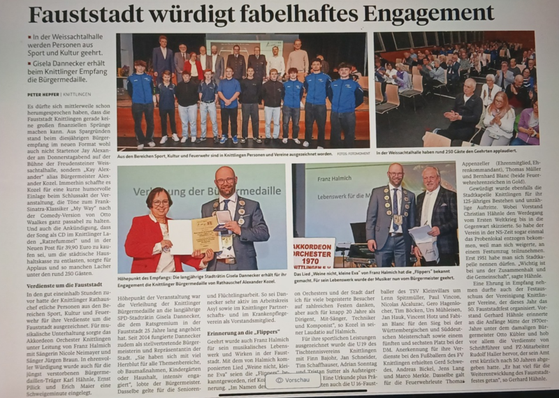 Unser erster offizieller Auftritt 2025 stand ganz im Rahmen des feierlichen Bürgerempfangs der Stadt Knittlingen. In der gut besuchten Weissachtalhalle in Freudenstein durften wir am 30. Januar 2025 den Ehrungsabend musikalisch umrahmen.