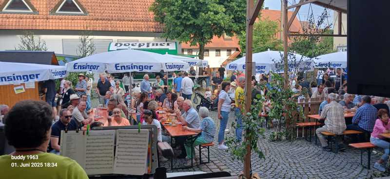 Diesen Samstag waren wir in Stuttgart-Rohr zu Gast. Im gut besuchten Biergarten der Gaststätte Eisenmann unterhielten wir bei sommerlichen Temperaturen das gut gelaunte Publikum. Bei unserem 4-stündigen Programm wurde getanzt, mitgesungen und ausgelassen gefeiert. Wir bedanken uns an dieser Stelle auch bei Raffael König, dem wir diesen Auftritt verdanken. Raffael ist ein Newcomer im Showgeschäft, der von unserem Dirigent Franz Halmich musikalisch und tontechnisch (Studioaufnahmen und Kompositionen) unterstützt wird. (H.B.)