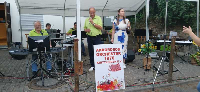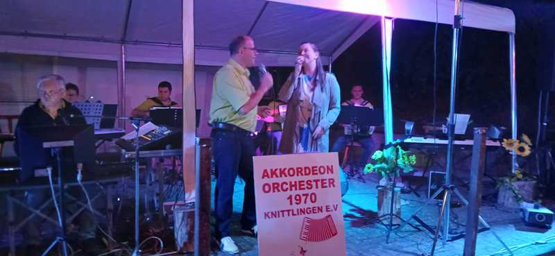 Bei sommerlichen Temperaturen durften wir ca. 170 feierfreudige Besucher aus nah und fern begrüßen. Unsere Sängerin und unsere Sänger (unterstützt vom Akkordeonorchester) zündeten ein Feuerwerk nach dem anderen. Schlager von Helene Fischer, Beatrice Egli, Andrea Berg, Kerstin Ott, Andreas Gabalier, Voxxclub und vielen mehr, luden zum mitsingen und tanzen ein. Die Stimmung wurde von Stunde zu Stunde besser.