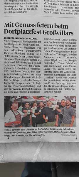Am Samstag, 19. Juli 2025 waren wir zu Gast beim Dorfplatzfest in Großvillars, der Heimat unseres aktiven Spielers Marc Silber. Es war, wie schon in den letzten Jahren, sehr schön bei euch.